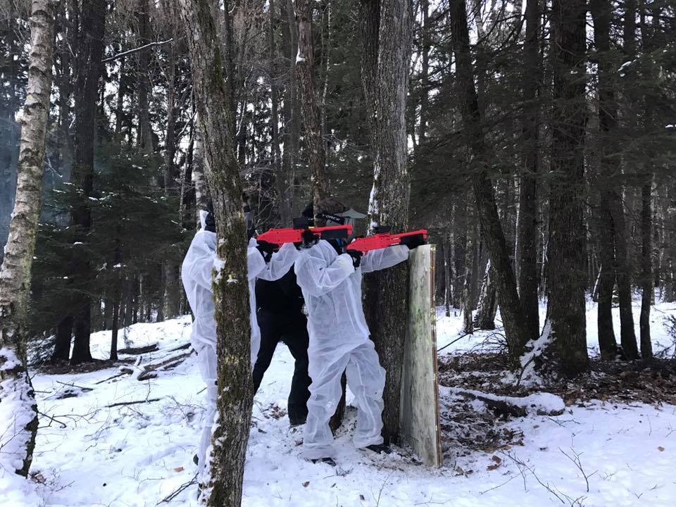 Die Kinder spielen mit Spielzeug-Markierern, eine gesonderte Einverständniserklärung der Eltern ist daher nicht erforderlich. Lediglich die Begleitperson erklärt uns gegenüber, dass sie die Erlaubnis der Eltern der teilnehmenden Kinder eingeholt hat.